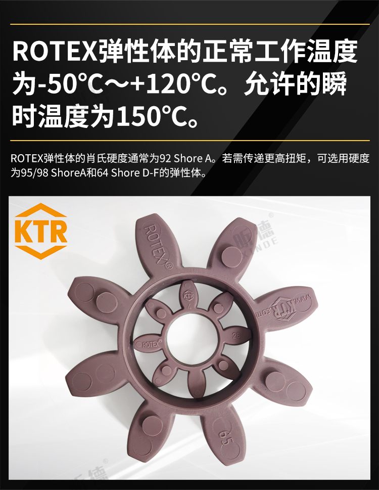 1.rotex彈性體的正常工作溫度為-50℃~+120℃。允許的瞬時(shí)溫度為150℃。