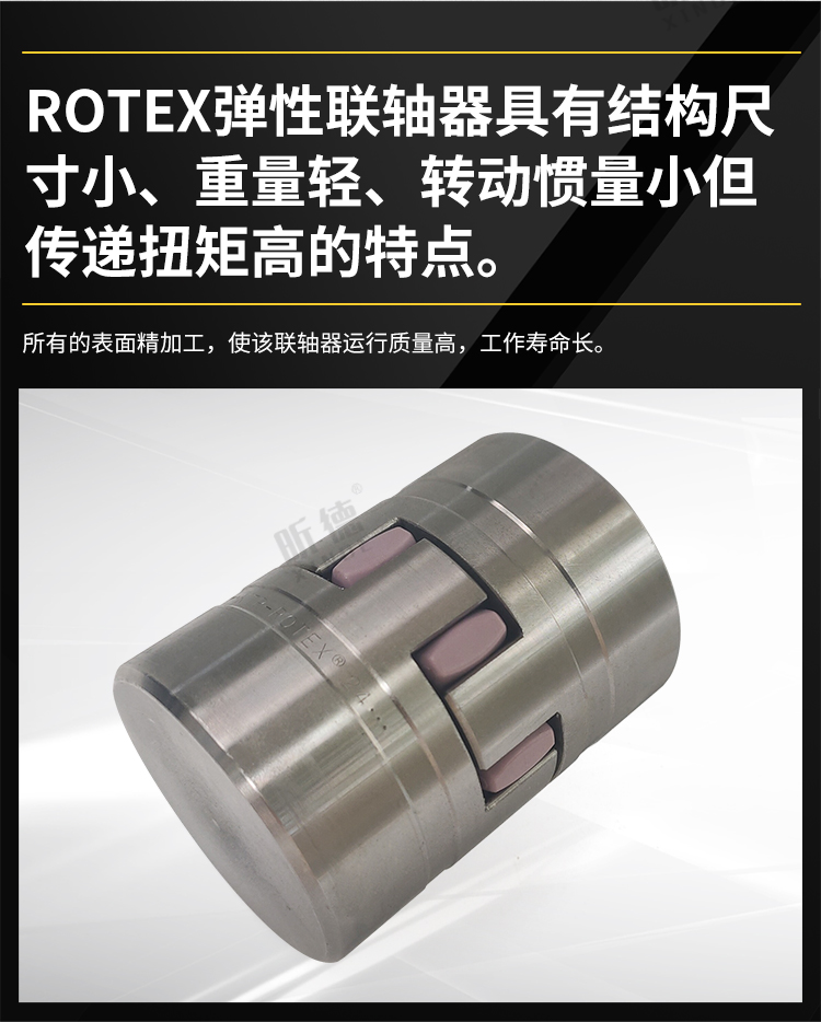 rotex彈性聯(lián)軸器具有結(jié)構(gòu)尺寸小、重量輕、轉(zhuǎn)動(dòng)慣量小但傳遞扭矩高的特點(diǎn)。