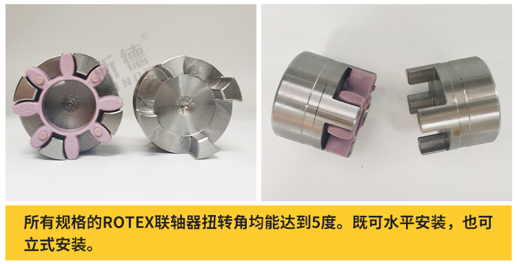 所有規(guī)格的rotex聯(lián)軸器扭轉(zhuǎn)角均能達(dá)到5度。既可水平安裝,也可立式安裝。