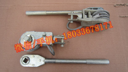 緊線器使用時(shí)先把緊線器上的鋼絲繩或鍍鋅鐵線松開,并固定在橫擔(dān)上,用夾線鉗夾住導(dǎo)線,然后扳動(dòng)專用板手。由于棘爪的防逆轉(zhuǎn)作用,逐漸把鋼絲繩或鍍鋅鐵線繞在棘輪滾筒上,使導(dǎo)線收緊。把收緊的導(dǎo)線固定在絕緣子上。然后先松開棘爪,使鋼絲繩或鍍鋅鐵線松開,再松開夾線鉗,最后把鋼絲繩或鍍鋅鐵線繞在棘輪的滾筒上。