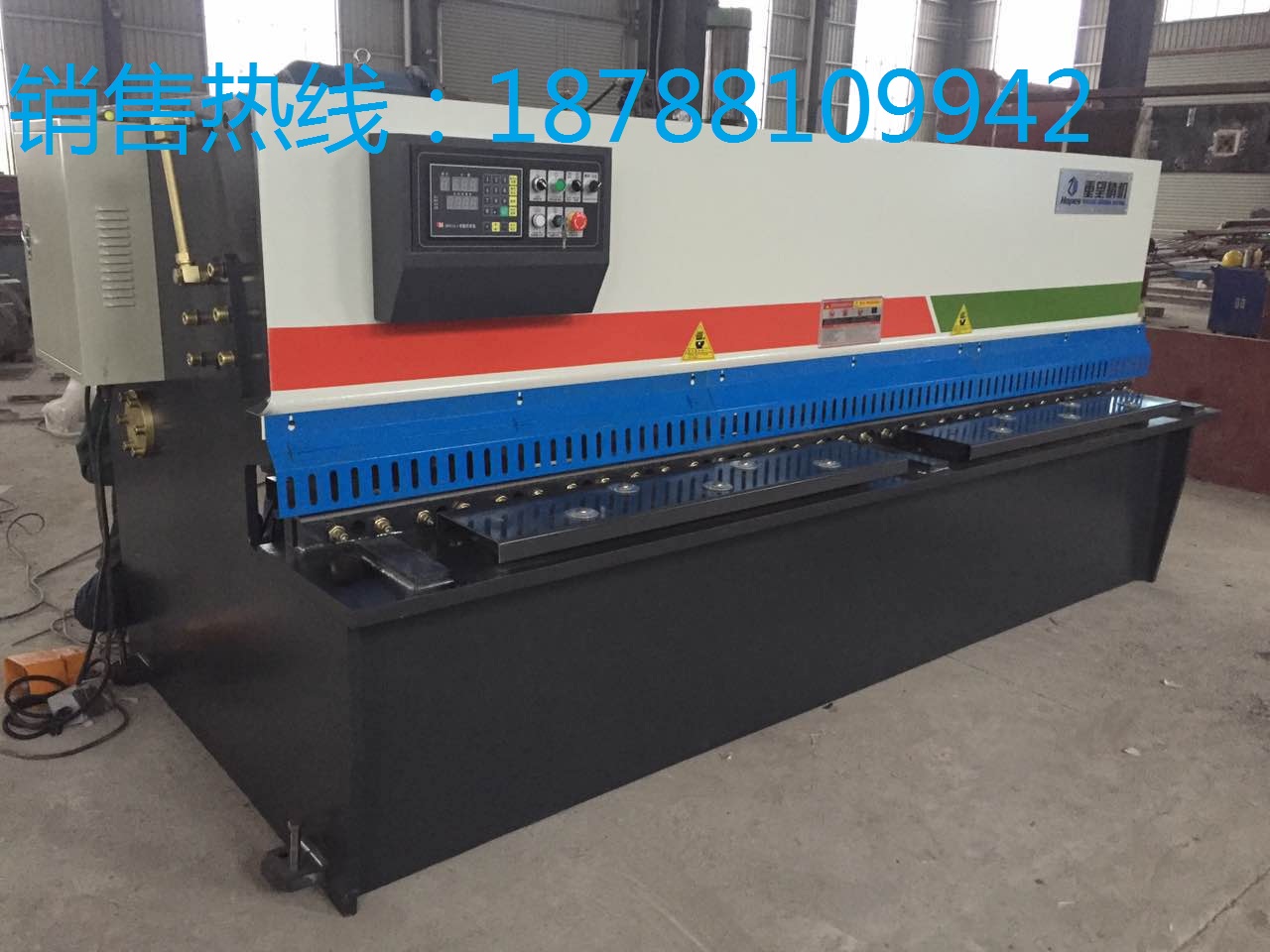 qc12y-6×3200液壓擺式剪板機(jī)/qc12k-6×3200數(shù)控?cái)[式剪板機(jī) 名稱(chēng)數(shù)值 可剪板厚 6mm 可剪板寬 3200mm 剪切角 1°30′ 材料強(qiáng)度 ≤450 行程次數(shù) 9次/分鐘 主電機(jī) 7.5kw 機(jī)器重量 6300kg 外形尺寸 長(zhǎng)-3600×寬-1610×高-1620(mm)五、采用先進(jìn)的插裝式閥組,保證了機(jī)床運(yùn)行的可靠性和安 全性電氣控制系統(tǒng)配置了日本三菱產(chǎn)plc、歐姆龍產(chǎn)微動(dòng)開(kāi)關(guān),大大增加了電氣元件的耐用性、可靠性和安 全性。