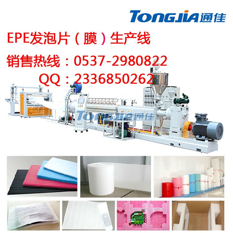 通佳epe發(fā)泡膜生產(chǎn)線更換機頭和相應(yīng)輔機還可生產(chǎn)發(fā)泡管、棒等各種發(fā)泡制品,真正實現(xiàn)一機多用。