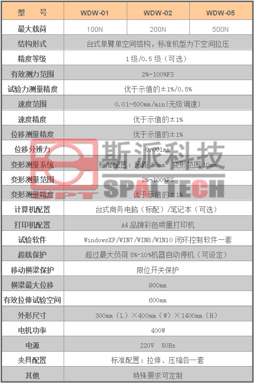 wdw系列臺式電子萬能材料試驗機采用結(jié)構(gòu)緊湊的單臂式主機結(jié)構(gòu),主要應(yīng)用于非金屬材料及小力值金屬材料的拉伸、壓縮等力學(xué)性能試驗,具有結(jié)構(gòu)簡單、穩(wěn)定可靠、外形美觀等特點,深受廣大用戶的歡迎。該機采用微機控制,可實現(xiàn)試驗力、試樣變形、橫梁位移等參數(shù)的閉環(huán)控制,并且可實現(xiàn)試驗力、試驗力峰值、橫梁位移、試樣變形等試驗曲線的屏幕顯示,同時進行數(shù)據(jù)自動處理、處理結(jié)果的儲存及試驗報告的打印。本機采用的閉環(huán)測控軟件,簡單易用,適度開放,并內(nèi)置了豐富的試驗方法標(biāo)準(zhǔn)庫以及各種各樣的附件使得本系統(tǒng)在非常廣泛的材料領(lǐng)域范圍內(nèi)得以應(yīng)用,典型應(yīng)用行業(yè)有塑料、薄膜、纖維和細(xì)線、粘合劑、泡沫材料、彈性體、生物材料、木制品和紙產(chǎn)品、薄金屬、金屬絲、高強度金屬、部件、緊固件、復(fù)合材料等。