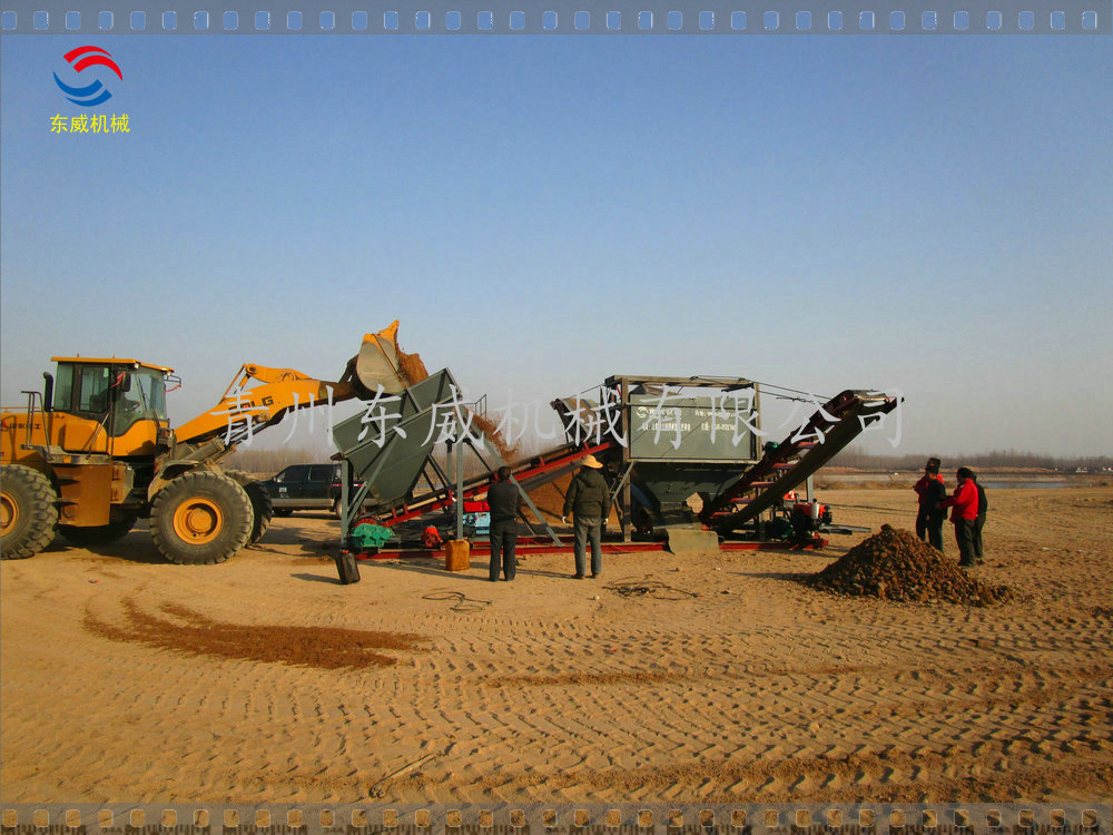 滾筒篩沙機(jī)由料倉(cāng)、上料機(jī)、滾筒篩、輸送機(jī)等組成,具有結(jié)構(gòu)簡(jiǎn)單、體積小、可由裝載機(jī)拖拽移動(dòng)等優(yōu)點(diǎn),并可一次性分離出2-4種顆粒的物料;
