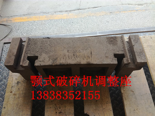 肘板的一端支撐在動顎下部的滑塊上,另一端支撐在后支座的滑塊上,肘板端部的墊片為調(diào)整排料口用。肘板除對動顎起支撐作用外,在外來不能破碎的異物進入破碎腔內(nèi),破碎機載荷劇增時,起保險作用,即通過自身迅速斷裂,切斷負載,來保護其它機件不受損傷。其材料和尺寸不能任意改變。