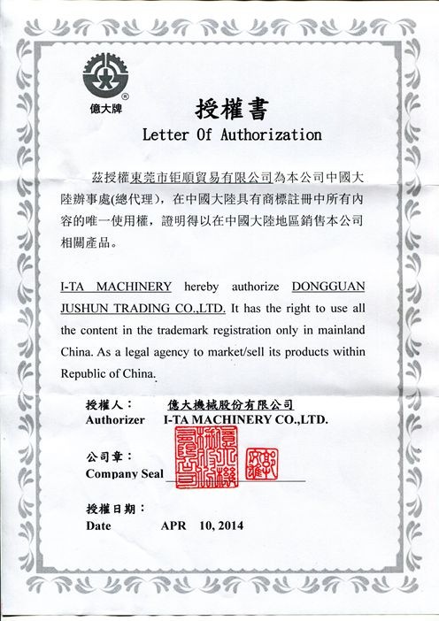 東莞市鉅順貿(mào)易有限公司--為大陸銷售臺(tái)灣億大機(jī)械股份有限公司的產(chǎn)品,臺(tái)灣授權(quán)大陸總辦事處(總代理),既然我們是總代理,專業(yè)、用心、讓客戶省時(shí)、省心、省錢。