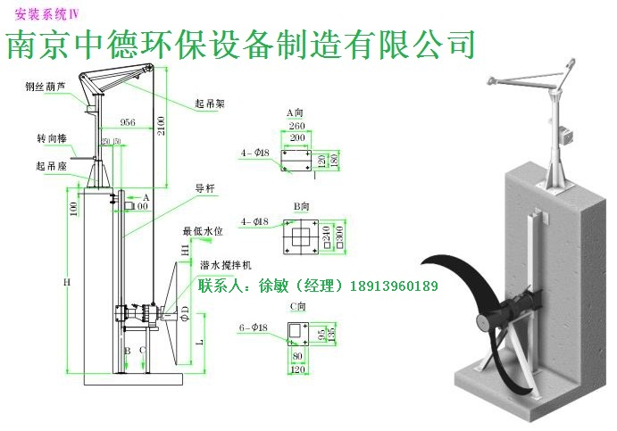 潛水推流器所需的配套功率是按容積大小、攪拌液體的密度和攪拌深度而確定的,根據(jù)具體情況采用一臺(tái)或多臺(tái)攪拌機(jī)。