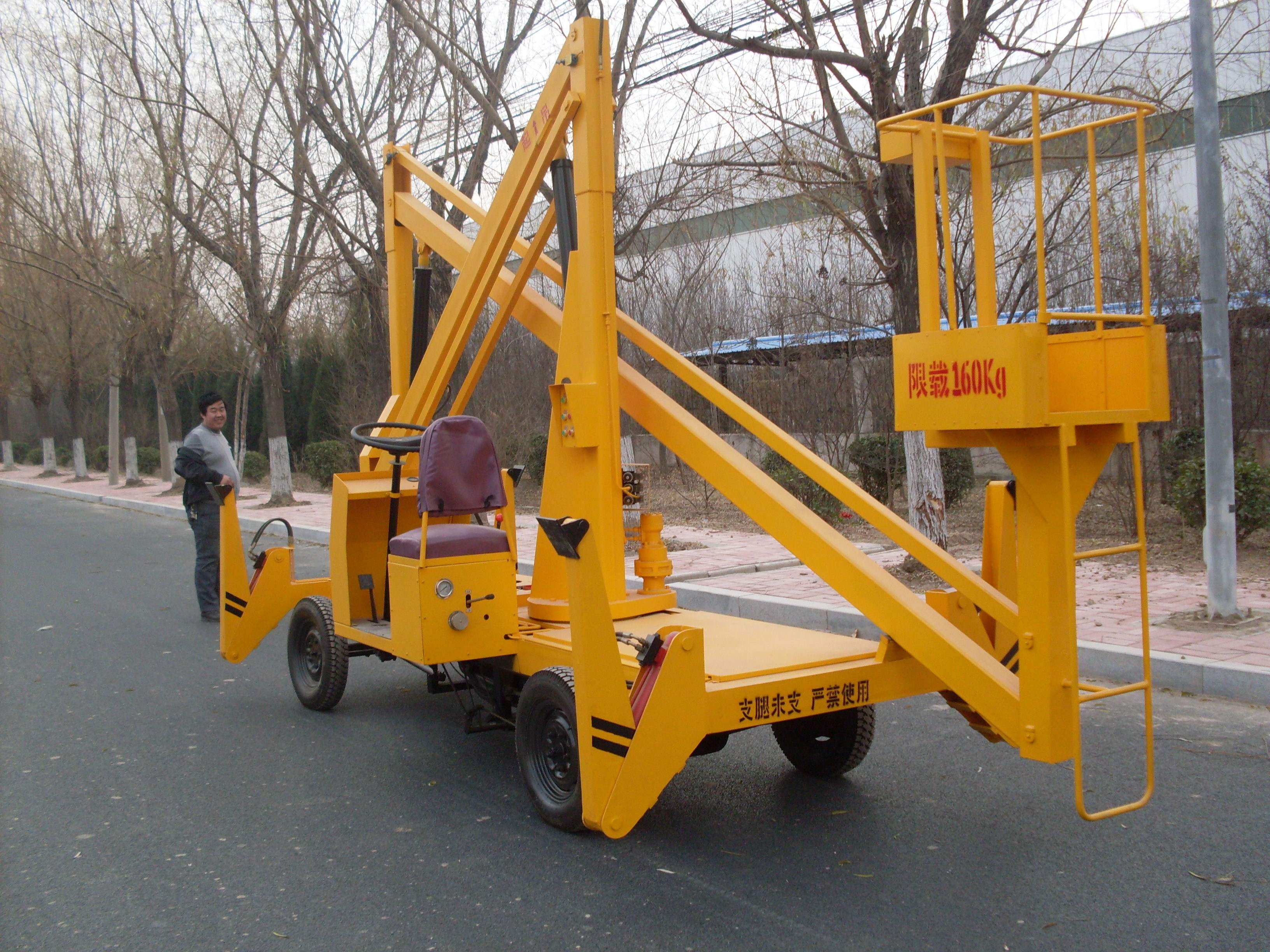 拖車曲臂式升降機:可以掛在汽車上,與汽車同步,適合野外高空作業(yè)。升降方式:1、用380-220v電源2、用電源不方便,可以用電瓶驅動升降。外型美觀,行走方便。