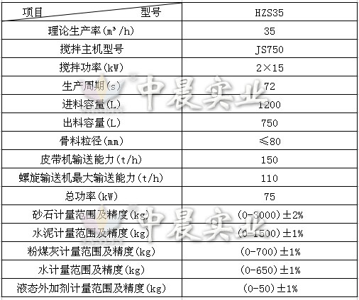 hzs35混凝土攪拌站技術(shù)參數(shù):