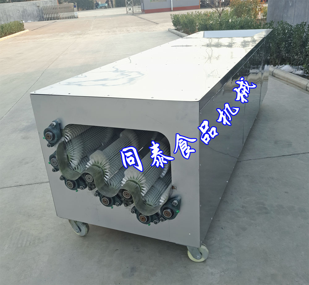 諸城同泰牌bqx-2200-6型白蘿卜清洗機(jī)在清洗過程中蘿卜表皮只與毛刷接觸,從而避免了蘿卜表皮的擦傷、碰傷,解決了一般蔬菜類清洗機(jī)對白蘿卜表皮造成損傷的技術(shù)問題。