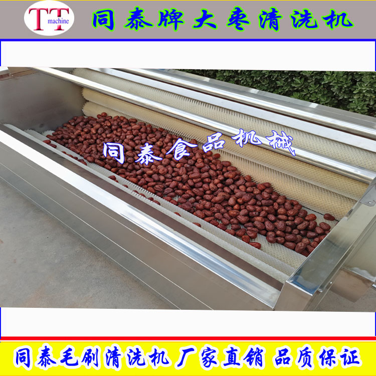 同泰牌毛刷式干紅棗清洗機(jī)在清洗過(guò)程中紅棗表皮只與毛刷接觸,從而避免了紅棗表皮的擦傷、碰傷,解決了一般蔬菜類清洗機(jī)對(duì)大棗表皮造成損傷的技術(shù)問(wèn)題。