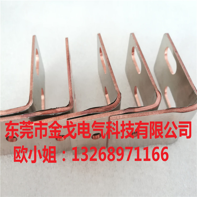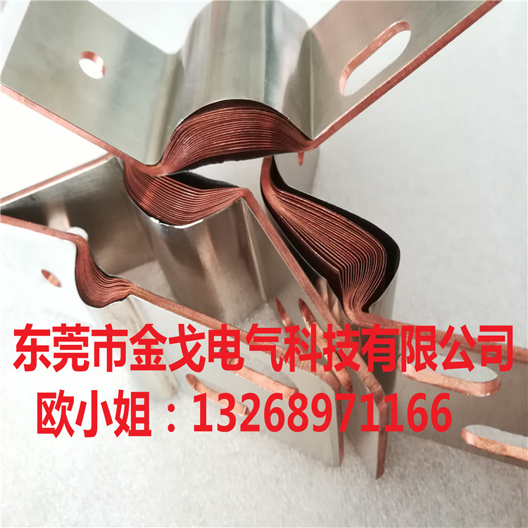 (3)釬焊是將0.03mm-0.5mm厚的銅箔疊片部分壓在一起,采用銀基釬焊料與扁銅塊對(duì)焊成型,接觸面可根據(jù)用戶要求鍍錫、銀、開孔等