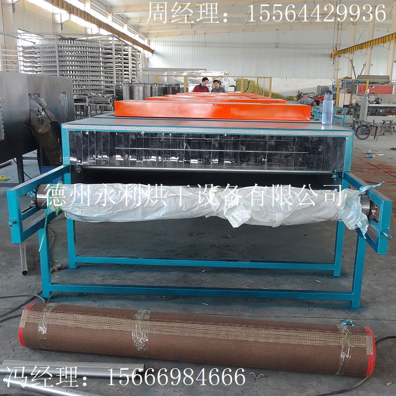此烘干機是專為印花染布烘干所需定做的烘干機,輸送帶采用特氟龍帶。輕便,環(huán)保。變頻調速,自動控溫,烘干量大,烘干效果佳。