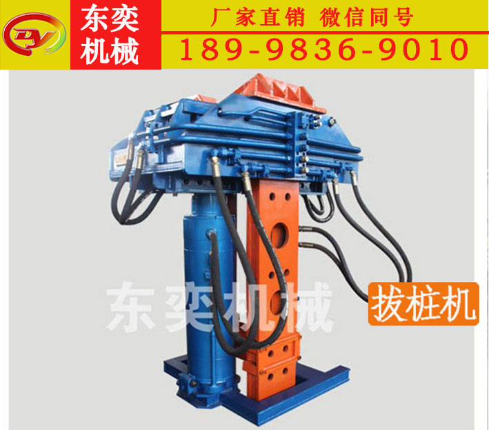 工法型鋼拔樁機利用其夾樁器夾住樁頭,液壓缸強制頂壓夾樁器,使之向上頂升一段距離,將樁逐段拔出,適用在粘土、砂土或含少量礫石的土層中拔工字鋼或型鋼樁。