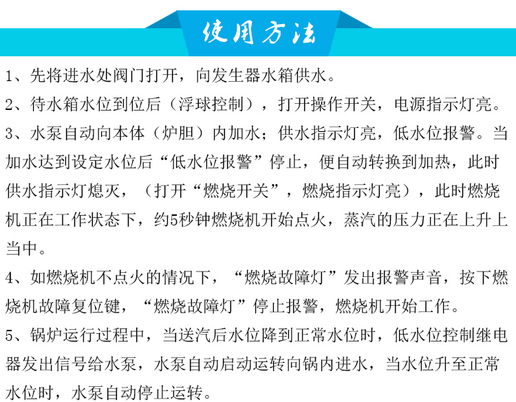 (1)全自動控制:一鍵式操作,非專業(yè)人士均能操作。整機出廠,只需把水、電鏈接好,按下開關(guān),鍋爐自動運行,簡單方便。