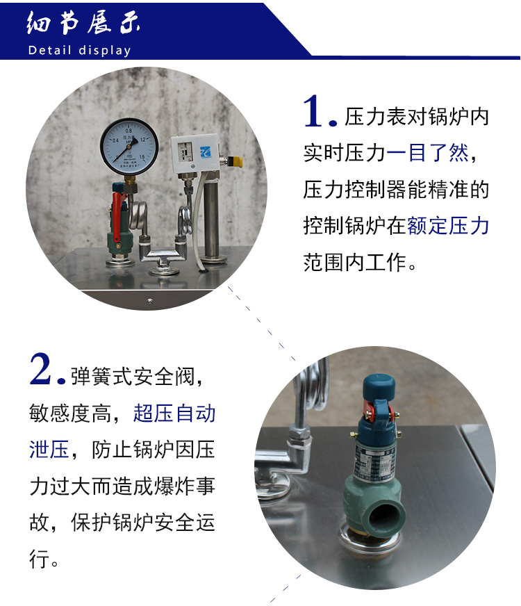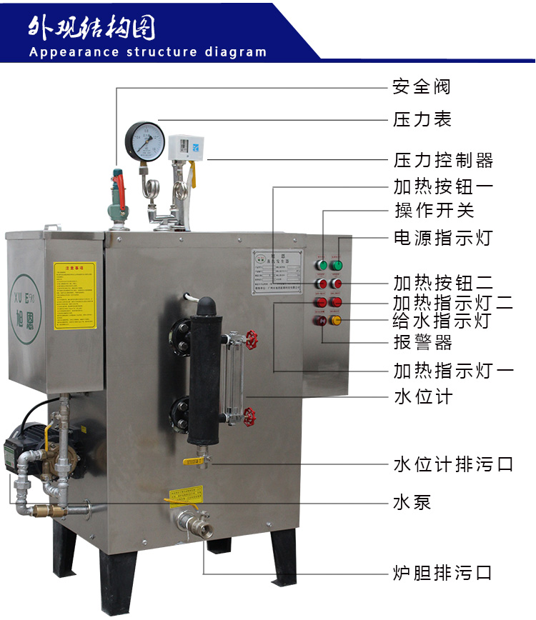 1、方便性:①電源引入電控箱后,一鍵操作,鍋爐便進(jìn)入(或脫離)全自動(dòng)運(yùn)行狀態(tài)。②鍋爐內(nèi)水量減少,控制系統(tǒng)自動(dòng)通過(guò)補(bǔ)水泵把水從水箱補(bǔ)充到鍋爐內(nèi)。