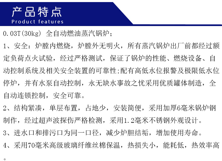 1.內(nèi)膽,水箱采用鍋爐碳鋼材質(zhì),蒸汽100%干凈,使用壽命長。
