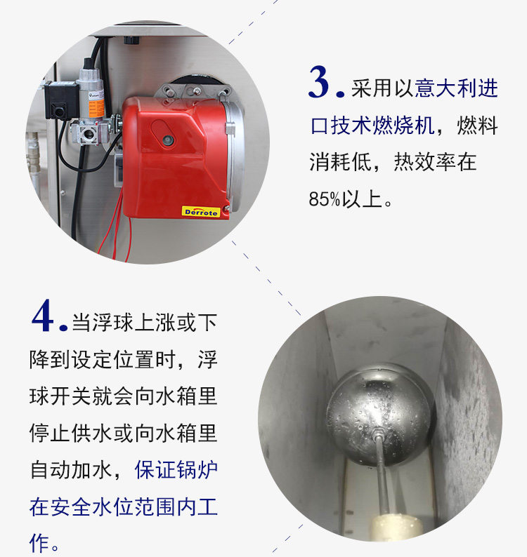 3、體積小,蒸汽純無水分,熱效率達98%以上。