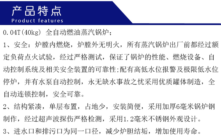 2.不銹鋼蒸汽發(fā)生器獨(dú)特的內(nèi)置式汽水分離器解決了一般同類產(chǎn)品蒸汽帶水的難題。這也是區(qū)別于國(guó)內(nèi)其它同類產(chǎn)品最顯著的特點(diǎn)。