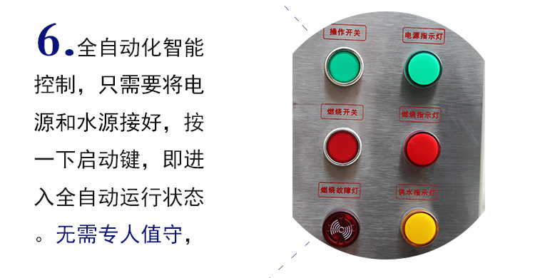 3.不銹鋼蒸汽發(fā)生器的所有內(nèi)部管路和控制系統(tǒng)在出廠前就已連接完畢。一步到位的傻瓜控制系統(tǒng),您只要按一個(gè)按鈕,鍋爐即可進(jìn)行全自動(dòng)運(yùn)行狀態(tài),極大的方便了您的使用!