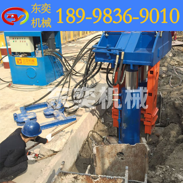 液壓拔樁機由主機、動力站兩部分組成,利用主機的夾樁器夾住要拔出的型鋼,通過動力站給主機油缸提供壓力,使之向上頂升一段距離,將樁逐段拔出,適用在粘土、砂土或含少量礫石的土層中拔工字鋼或型鋼樁。適用于市政建設(shè)、管道鋪設(shè)、隧道工程、污水處理,支護施工等等,特別是在場地狹小、頂部空間不足的場地。