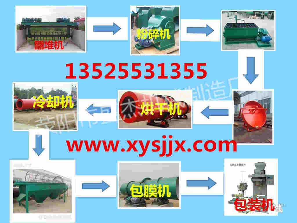 有機肥生產(chǎn)線的生產(chǎn)工藝,主要是將含水量低于60%的有機固體廢棄物如:雞糞、豬糞、牛糞、鴨糞、生活垃圾、糖渣、酒糟、污泥、藥渣、糖渣、蘑菇下腳料、稻殼、雜草、秸稈、味精廠下腳料等為主要原料,加微生物發(fā)酵菌劑 等混合勻勻,好氧連續(xù)發(fā)酵使其充分腐熟、滅菌、除臭、去水,發(fā)酵腐熟烘干至含水量為30-35%的有機廢棄物經(jīng)粉 碎后,進行磁選篩分,然后與黏結(jié)劑 及需配伍的其他成分的原料按配比要求在自動化配料混合系統(tǒng)中進行計量、配料、混合(或經(jīng)過進一步干燥生產(chǎn)粉 狀有機肥),經(jīng)充分混合后的物料由皮帶輸送機均勻連續(xù)的喂入造粒機中造粒,然后經(jīng)烘干機進行低溫大風量烘干(≤65℃)后進行冷卻、篩分、成品顆粒經(jīng)包膜機包膜(加亮光劑 和防結(jié)塊劑 ),由皮帶輸送機輸送到成品料倉,經(jīng)電腦自動定量包裝系統(tǒng)計量,包裝為40-50kg/袋的成品后碼垛入庫,最終制作出圓顆粒的肥料,整套生產(chǎn)工藝中各個設(shè)備之間的物料輸送根據(jù)設(shè)備配置需求配置b500--b600-b650(全套設(shè)備按需配置ye3節(jié)能型電機和變頻調(diào)速電機,皮帶輸送機配制人字帶,杜 絕物料輸送過程中回料,采用槽式結(jié)構(gòu),杜 絕物料滑落)。