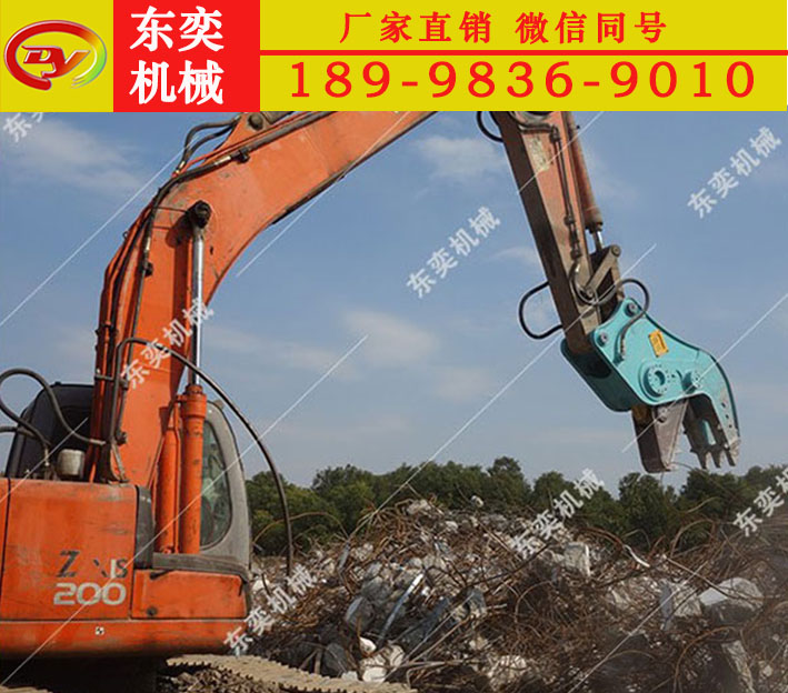挖掘機(jī)液壓鉗又名挖掘機(jī)破碎鉗,拆遷破碎剪。近幾年在國(guó)內(nèi)逐漸受到客戶認(rèn)可,在拆遷中粉 碎混凝土作業(yè)效率高,搭配破碎錘使用,免除了人工作業(yè)的危險(xiǎn)性高 成本高的缺點(diǎn)。液壓鉗由鉗體、油缸,運(yùn)動(dòng)顎、固定顎四大部件組成,通過(guò)液壓系統(tǒng)對(duì)液壓油缸施加運(yùn)動(dòng)壓力,使液壓鉗的運(yùn)動(dòng)顎和固定顎實(shí)現(xiàn)張合運(yùn)動(dòng),實(shí)現(xiàn)粉 碎效果。