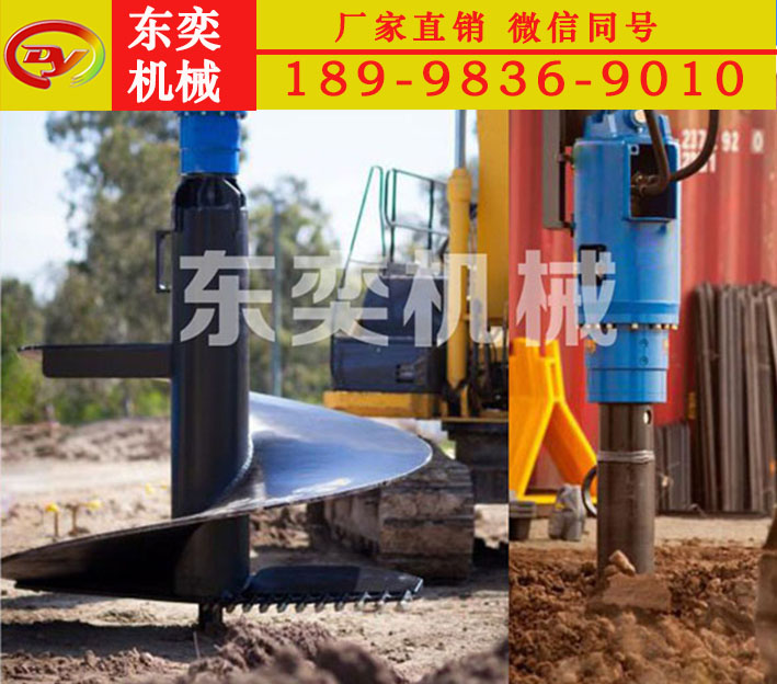 螺旋鉆機采用挖掘機,裝載機,鏟車,鉤機作為動力適用于種樹挖坑、電線桿坑鉆孔、鉆孔直徑徑范圍為:200mm-1200mm。適用于直接鉆孔立桿的工程,也適用于在坑中下卡盤的鉆孔工程。該機同時適用太陽能光伏發(fā)電中支架安 裝時的鉆孔工程,將鉆桿卸下后安 裝特定連接頭可直接用于螺旋樁的安 裝。同時該機也被稱作為打樁機,在農(nóng)村房屋改造工程中,該機可以用于樁基的鉆孔。該機充分實現(xiàn)了一機多用的功能,大大提高了實用性。螺旋鉆機,主要由驅(qū)動頭和鉆頭組件構(gòu)成,驅(qū)動頭與鉆頭組件固定連接,鉆頭組件包括鉆桿、包繞著鉆桿的螺旋葉片、以及設(shè)置在鉆桿末端的鉆頭,所述的螺旋葉片的底端設(shè)置有鉆齒。