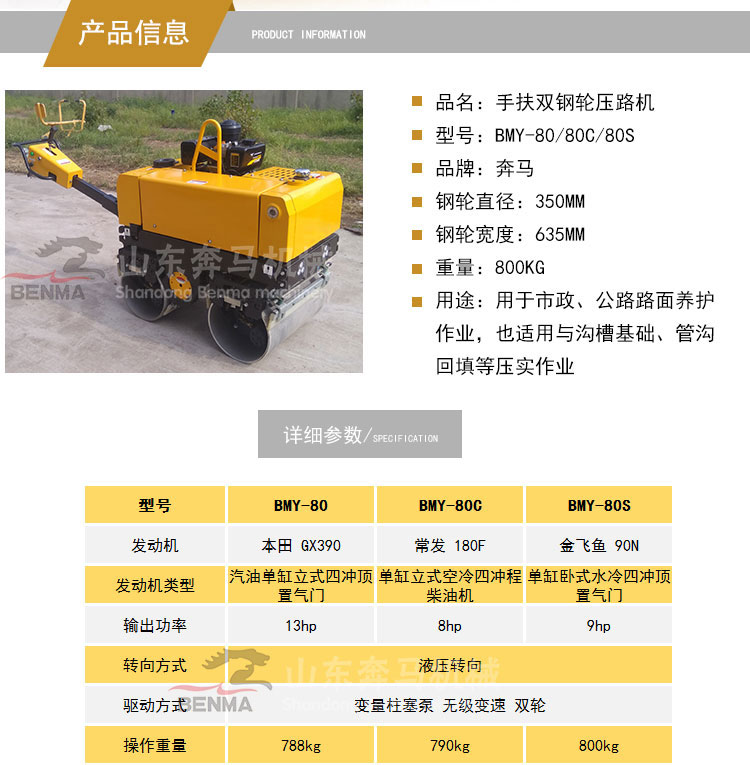品牌:奔馬牌類型:振動(dòng)壓路機(jī)型號(hào):svh-80/80c產(chǎn)品別名:手扶式雙鋼輪壓路機(jī)svh-80工作重量:0.8振動(dòng)輪直徑:350振動(dòng)輪寬度:635振動(dòng)頻率:65規(guī)格:2460*1800