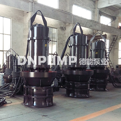 軸流式潛水泵、混流式潛水泵主要由泵體、葉輪、潛水電機(jī)等組成。電機(jī)與泵頭共軸并構(gòu)成一個(gè)整體,電機(jī)與泵使用機(jī)械密封隔開(kāi),電纜進(jìn)線處用進(jìn)線密封封好,使整個(gè)電機(jī)處于良好的密封狀態(tài),整機(jī)潛沒(méi)在水中運(yùn)行。