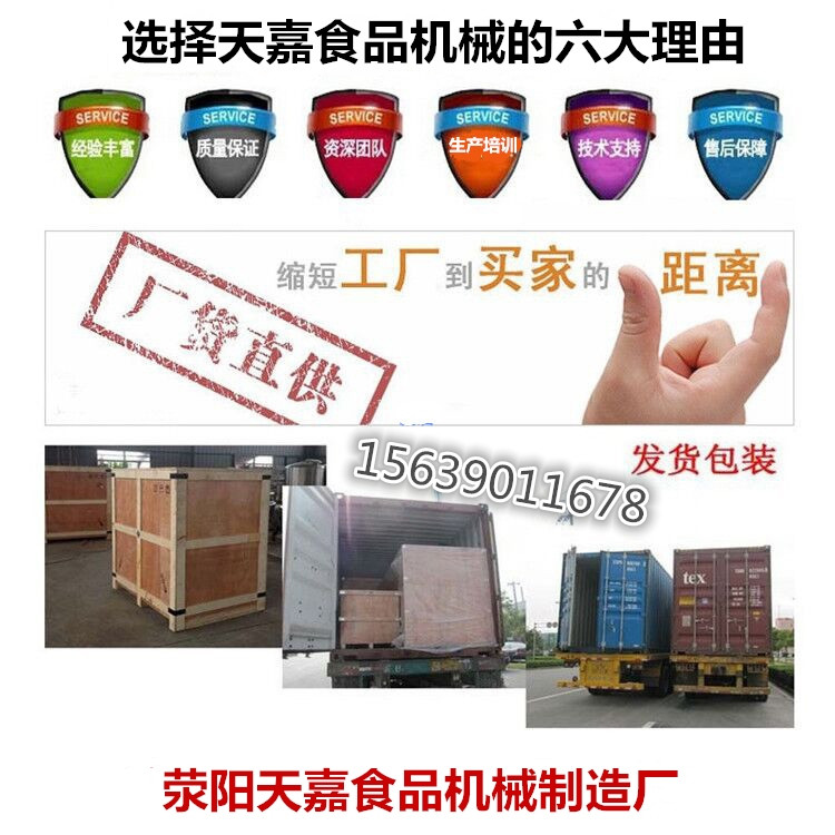 產(chǎn)品承諾:一年三包+終生維修+量身定做+長期跟蹤服務(wù)是滎陽天嘉食品機(jī)械廠的服務(wù)宗旨,并配有多位技術(shù)全面的工程技術(shù)人員上門服務(wù),為客戶解決技術(shù)難題。公司提供全套的安 裝調(diào)試,維修,技術(shù)咨詢等售前售后一條龍服務(wù)。
