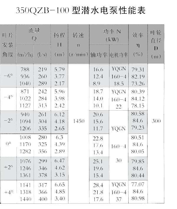350qzb-100型潛水軸流泵800-1500方流量