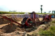 篩沙水洗一體機(jī)工作時(shí),電機(jī)通過(guò)三角帶、減速機(jī)、齒輪減速后帶動(dòng)上料機(jī),均勻給料到滾篩進(jìn)行篩分,合格產(chǎn)品經(jīng)過(guò)溜槽進(jìn)入洗槽中,此時(shí)鏈斗裝置的動(dòng)力系統(tǒng)帶動(dòng)四角輪緩慢轉(zhuǎn)動(dòng),在鏈斗的帶動(dòng)下翻滾,并互相研磨,除去覆蓋砂石表面的雜質(zhì),同時(shí)破壞包覆砂粒的水汽層,以利于脫水;同時(shí)加水,形成強(qiáng)大水流,及時(shí)將雜質(zhì)及比重小的異物帶走,并從溢出口排出,完成清洗作用。干凈的砂石由挖斗提起,最后砂石從上四角輪倒入出料槽,完成砂石的清洗作用。