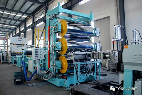 ★縱拉部分:采用多個(gè)熱輥拉伸,保證縱拉板材的均勻性和質(zhì)量。導(dǎo)熱油加熱,進(jìn)口溫控表配以氣動(dòng)薄膜調(diào)節(jié)閥進(jìn)行自動(dòng)溫控。經(jīng)過(guò)預(yù)熱、拉伸、定型、牽引,將縱拉制品送往橫拉裝置。