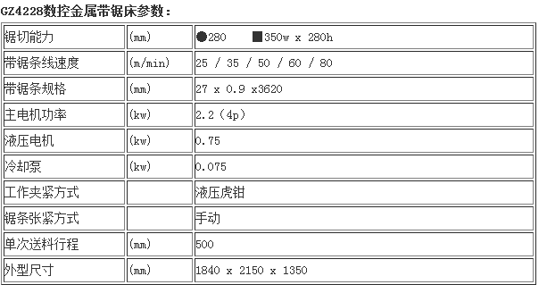 產(chǎn)品型號:gz4228數(shù)控金屬帶鋸床