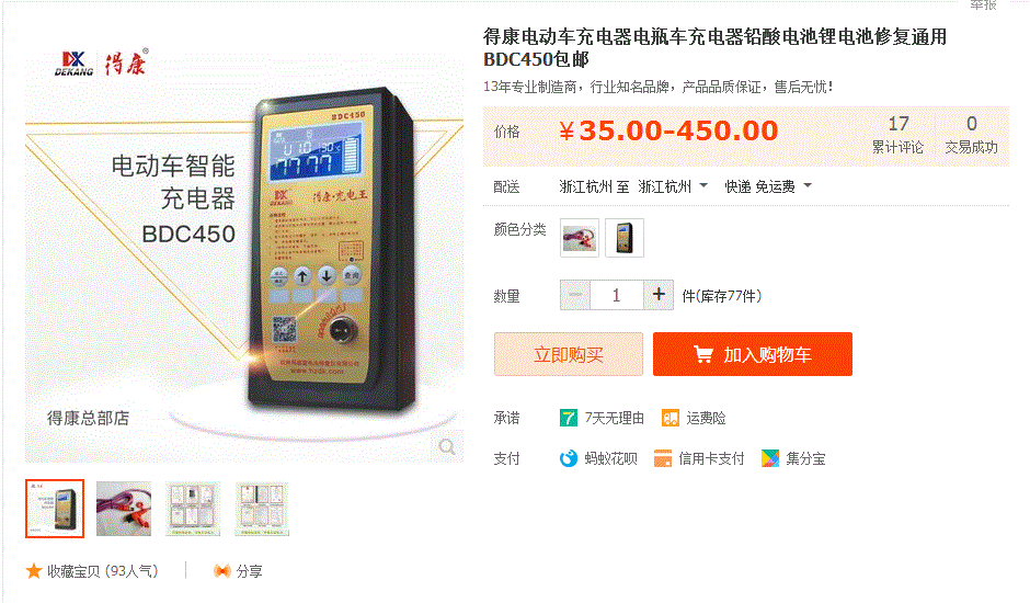 得康電動車充電器電瓶車充電器鉛酸 電池鋰電池修復通用bdc450包郵