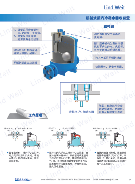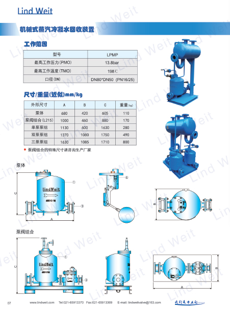林德偉特節(jié)能型氣動冷凝水回收泵 用于無需電能驅(qū)動,將冷凝水從低位輸送到高位的場合。主要使用的工況是將工藝系統(tǒng)或者冷凝水收集區(qū)內(nèi)的冷凝水輸送回冷凝水回收系統(tǒng)。