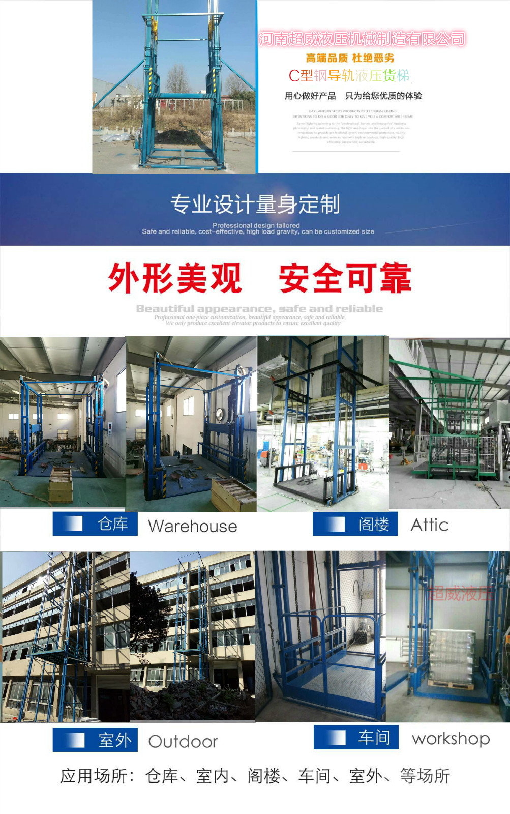 產(chǎn)品結構堅固,承載量大,升降平穩(wěn),安 裝維護簡單方便,是經(jīng)濟實用的低樓層間替代電梯的理想貨物運輸設備。