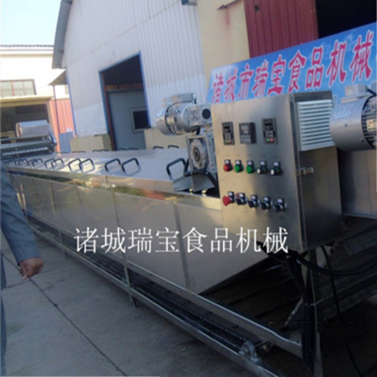 巴氏殺菌線分殺菌和冷卻兩部分,通過鏈條的不斷運(yùn)轉(zhuǎn),帶動(dòng)被殺菌物進(jìn)入槽內(nèi)連續(xù)作業(yè),適用于醬菜、腌漬菜、低溫肉制品、果汁、果凍、酸 奶及各類飲料的自動(dòng)化連續(xù)巴氏殺菌,也可用于蔬菜的漂燙、殺青處理。整機(jī)采用優(yōu)質(zhì)sus304不銹鋼制作,以水為介質(zhì),分殺菌槽、冷卻槽兩部分,滅菌溫度、速度可根據(jù)物料加工工藝要求設(shè)定。該機(jī)運(yùn)行平穩(wěn),無極變頻調(diào)速,噪音低,不銹鋼網(wǎng)帶強(qiáng)度高,伸縮性小,不易變形,易保養(yǎng)。該機(jī)結(jié)構(gòu)緊湊、操作方便、故障率低,加熱方式采用鍋爐蒸汽或鍋爐熱水,特別適合連續(xù)殺菌作業(yè)。徹底解決了滅菌過程中因?yàn)樽詣?dòng)化程度底而造成的“隨意性”加強(qiáng)了“一致性”,大大提高了滅菌的成功率。
