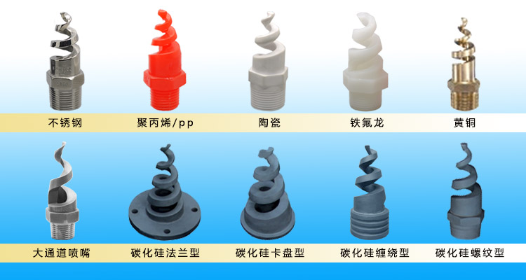 材質(zhì):不銹鋼、碳化硅、黃銅、塑料、陶瓷、四氟、哈氏合金、pp聚丙烯