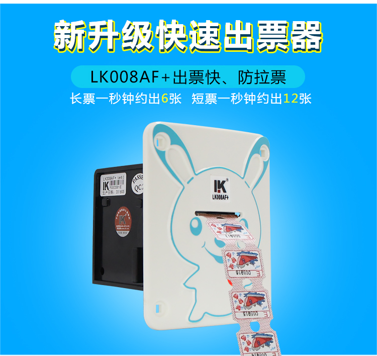 俐康熱銷兔子面板出票器lk008af+ 特色拼接專利申請彩票器 升級版快速長短票出票器