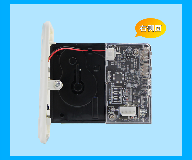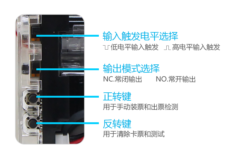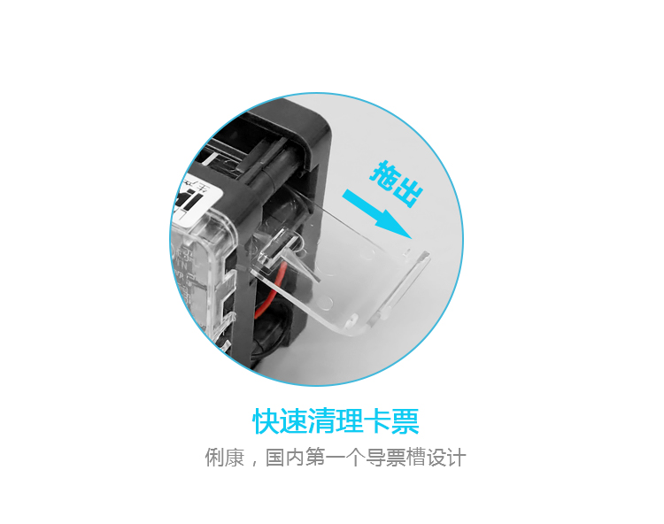 自帶出票情況狀態(tài)指示燈,百搭卡通清新藍(lán)白新料注塑面板。全新升級黑色機身,我們?nèi)庋劭梢钥吹玫降纳壊课挥校涸鲈O(shè)了限位平臺,增加骨位,整體強度更大,電眼處增加遮蔽覆蓋搞干擾,以及整體結(jié)構(gòu)重新調(diào)整,從結(jié)構(gòu)上改善易拉票、扯出票和彈票情況。另外我們看不到的內(nèi)部結(jié)構(gòu):v3.1線路板,全新升級,搞干擾能力更強,指示燈顯示更簡潔清晰。