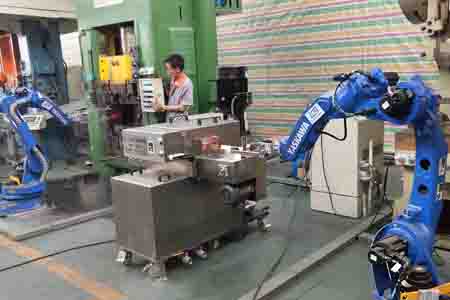 力泰科技自主品牌鍛造機(jī)器人輕松完成制坯,預(yù)鍛,精鍛,噴石墨、切邊等過程,生產(chǎn)節(jié)拍效率高,平均6~7秒/件的上下料速率,生產(chǎn)穩(wěn)定,產(chǎn)品質(zhì)量一致性好,大大降低了產(chǎn)品的不合格率。擁有防粘模專利技術(shù),能有效解決產(chǎn)品粘模問題。安 全系統(tǒng)更強(qiáng),有效保護(hù)設(shè)備和人的安 全。擁有專業(yè)機(jī)器人團(tuán)隊(duì),為鍛造企業(yè)提供最佳的自動化一站式解決方案。