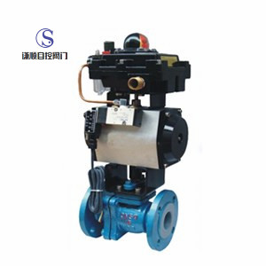 氣動襯氟耐腐蝕法蘭球閥,由氣動活塞式執(zhí)行機構(gòu)和o型襯氟球閥組成。