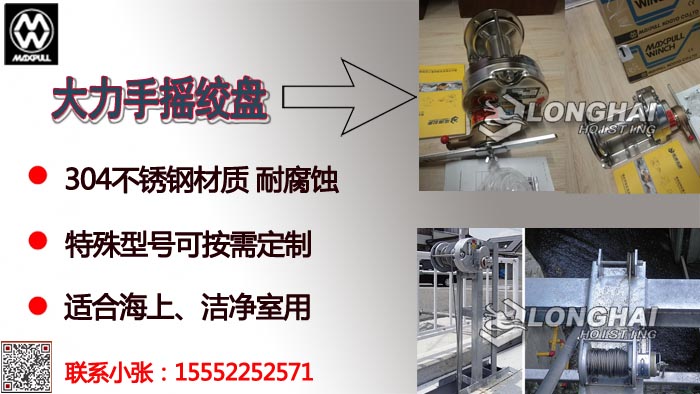 esb-3不銹鋼手搖絞盤 手搖絞盤品牌 哪里有賣手搖絞盤【龍海起重 只做正品 假一賠百】大力手搖絞盤屬于日本maxpull winch品牌原裝正品,其中有幾款屬于不銹鋼手搖絞盤,其采用用sus-304材質(zhì)制成,具有耐鹽 性、耐化學(xué)性、防銹性等特點,特別適合用于海上、化工廠、食品廠、潔凈室等場合。