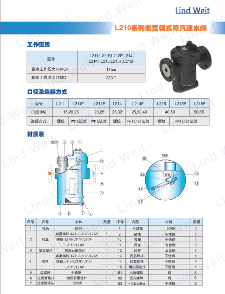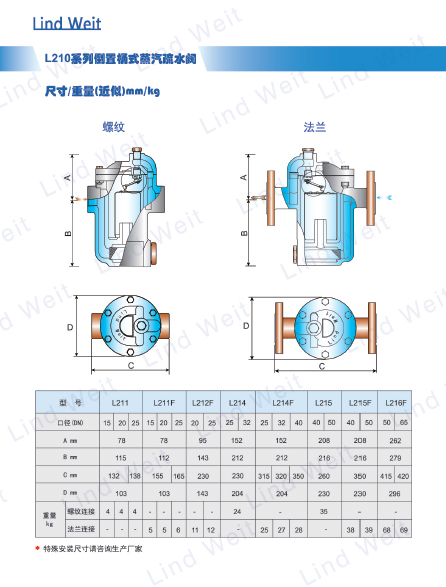 林德偉特浮桶式蒸汽疏水閥產(chǎn)品特點: