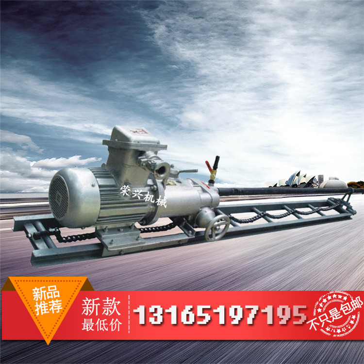 為了延長(zhǎng)鉆頭的使用壽命及改善操作者的勞動(dòng)條件,采用水排粉 即濕式鉆孔,在鉆孔作業(yè)中,只需操縱手輪,電鉆就可自行推進(jìn)和快速退架在跑道上快速退回。