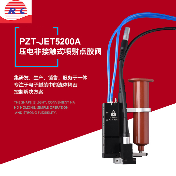 pzt-jet5200a可以匹配市場中任意點膠平臺,既可以噴射入0.15mm的縫隙(led屏幕)又可以在不平整的工件表面進行噴膠(柔性電路板等);