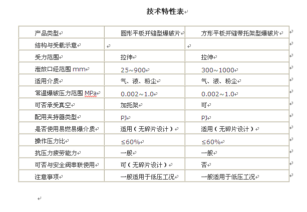 4.方形平板開縫帶托架型爆破片pfft:適用于需承受真空或背壓的場合