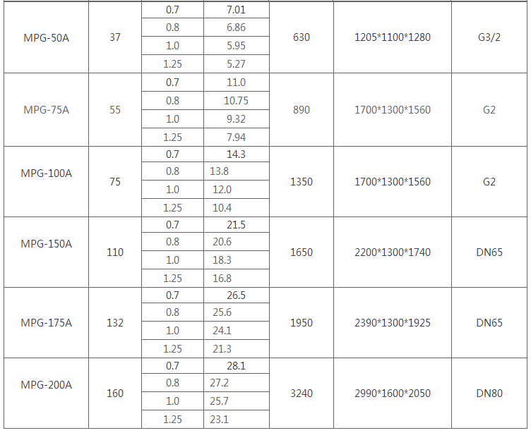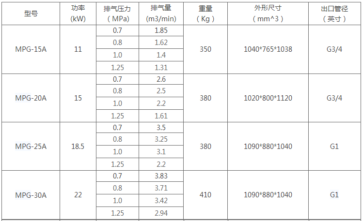 mpg系列空壓機(jī)技術(shù)參數(shù)